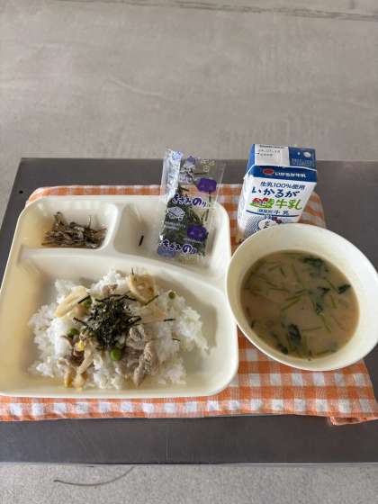 今日は、お正月献立でした。正月には、「今年も幸せに過ごせますように」と願って食べる料理がたくさんあります。ごまめは、しょうゆや砂糖で作った甘辛いたれを小さなカタクチイワシにからませた料理です。「田作り」ともいわれます。昔、肥料としてイワシを田にまいたところ、豊作になったことから、豊作を願う気持ちがこめられています。