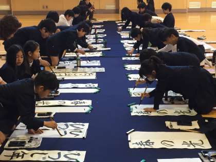 書写で学習した基本的な筆使いを確認し、作品を仕上げる喜びを味わうために、ゲストティチャーの小林先生をはじめ地域の方々をお招きし「書初め大会」を実施します。