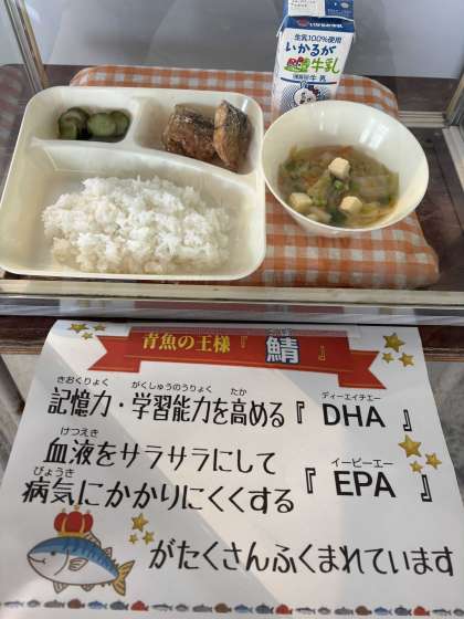 ごまさばは、おなかにごまのような模様ががあります。一年を通して脂の量や、味は変わるません。今日の給食では、「さばのカレー竜田揚げ」に使っています。
