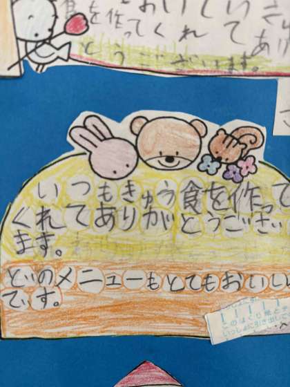 各クラスから日頃の感謝を込めてメッセージを調理員さんに渡しました。