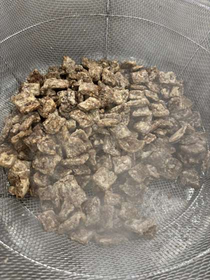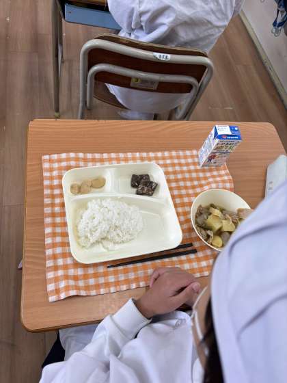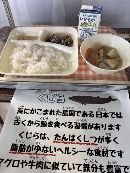 今日は、「クジラの竜田揚げ」が出ました。柔らかく揚がっていて大好評でした。