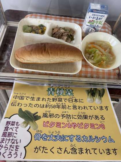 チンゲンサイは、中国で生まれた野菜で日本に伝わったのは、約50年前と言われています。風邪の予防に効果があるビタミンAやビタミンC骨を丈夫にするカルシウムがたくさん含まれています。