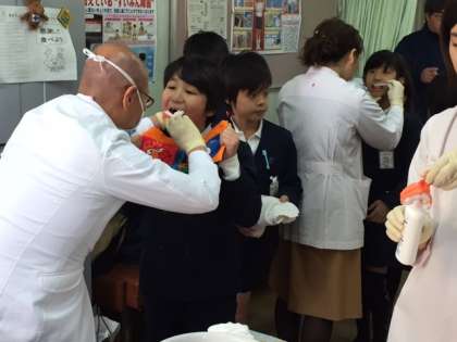 これは永久歯が生え揃い始め、かつまだ生えた永久歯が虫歯菌に対して強くない4年生位の頃に学校で一斉にフッ化物(フッ素)を歯に塗布し、虫歯の予防を図るものです。