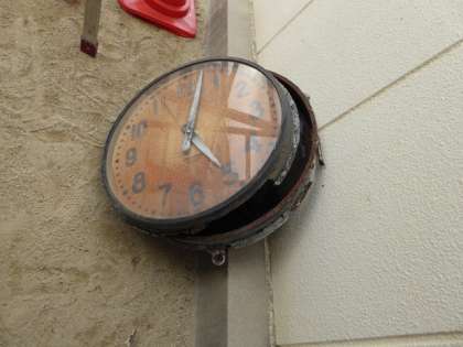 長い間こわれて動かなかった東校舎壁面の大時計、