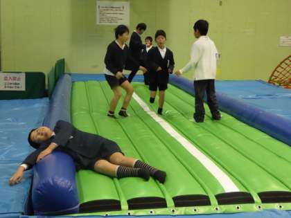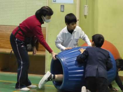 おなかを満たした後は、小体育館でトランポリンやボール遊びで時間いっぱい走り回っていました。