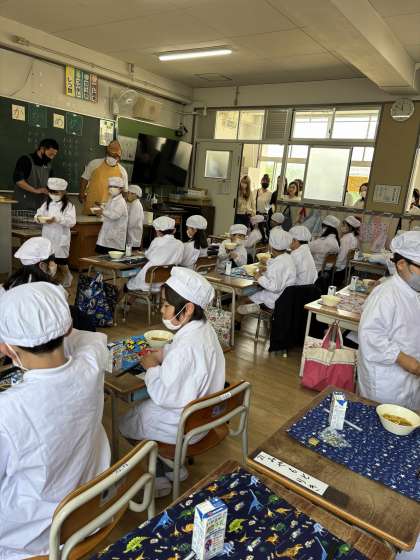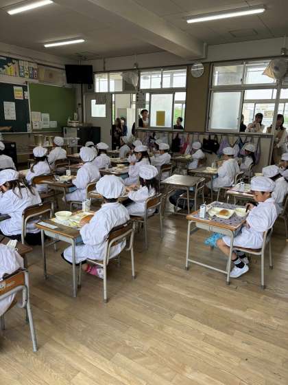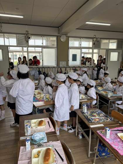 今日は、1年生の保護者に日頃どんな風に給食を食べているかみていただきました。