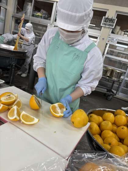 かわをきれいにむくと「甘酸っぱくておいしい」と好評でした。