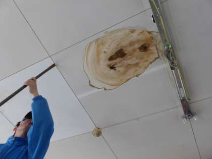 校舎壁面の亀裂から浸透したとしか考えられません。