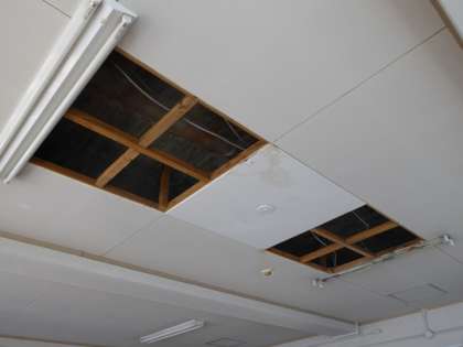 天井のボードを2枚はがすと、大きなクラック(ひび割れ)