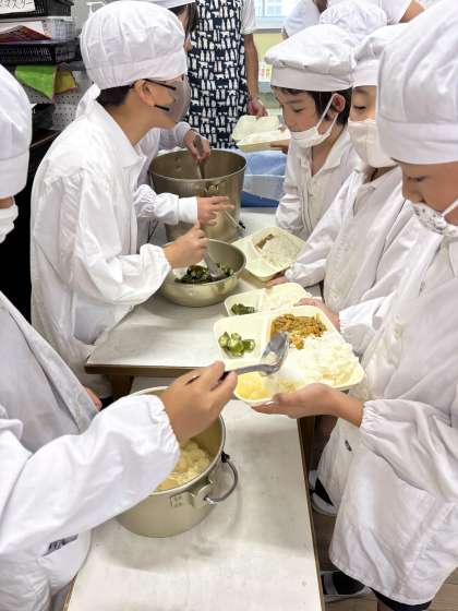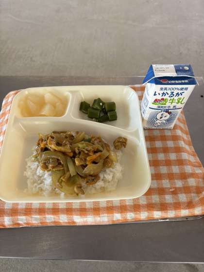 オクラは、鹿児島県産で新鮮でねばりがありましたが甘酢味で好評でした。和なしは、国産のなしを缶詰にしたもので大好評でした。