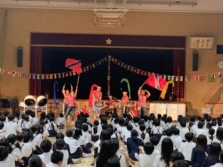 午前に1・2・3年生、午後に4・5・6年生が、打楽器を中心にした演奏を鑑賞しました。