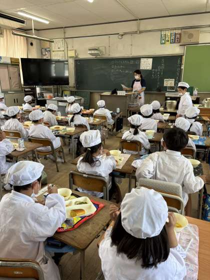 今日の給食の「ミックス海草のサラダ」には、わかめ、茎わかめ、こんぶ、赤とさかのりが使われています。