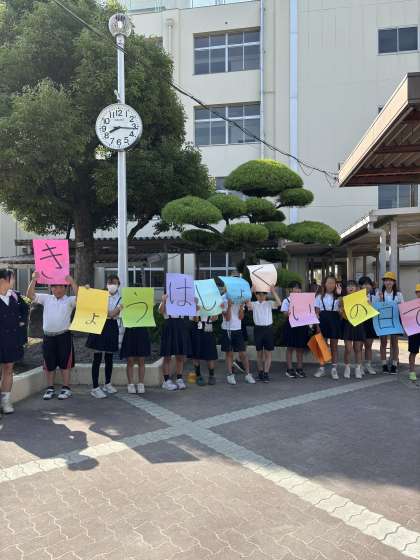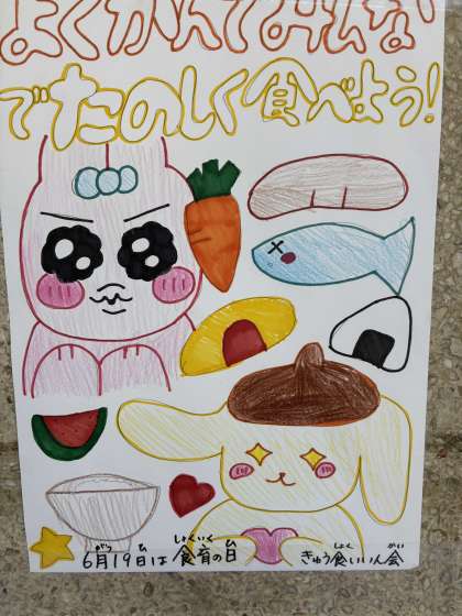 朝の挨拶で「今日は、食育の日です給食をしっかり食べましょうと」給食委員会の児童が呼びかけてくれました。