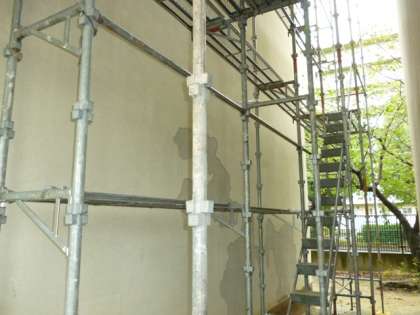 長年、壁面がはがれ落ち危険な状態になっていた南側校舎の壁面補修工事が始まりました。