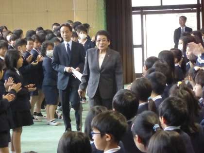 その後は、金谷東淀川区長が大阪市からの感謝状、校長の私からは学校からの感謝状を贈呈しました。
