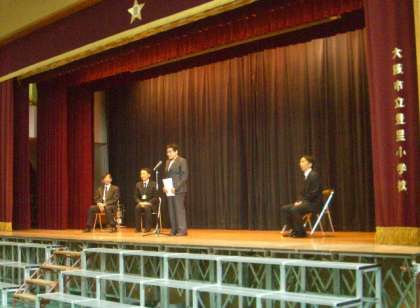 「椅子に座ったままで…」とお勧めしたのですがお断りされるほどお元気で、立ったまま母校「豊里小学校」への熱い思いを語られました。