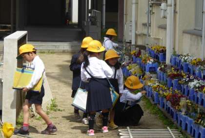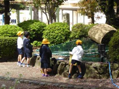 校長室で仕事をしていても、この時期は中庭がにぎやかです。