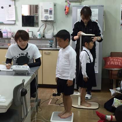 ※今年度より全国的に発育測定から「座高」は除外され、「身長」「体 重」の2測定のみとなりました。座高を測定していた国は世界的にも日本と韓国(2006年に廃止)くらいで、その意義がたびたび話の俎上にも載せられていました。