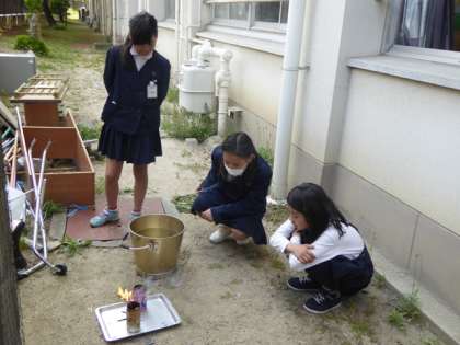 6年1組、5時間目の理科の授業、「燃焼実験」です。