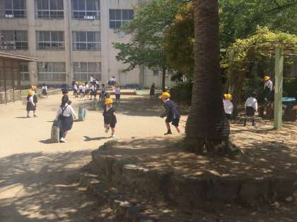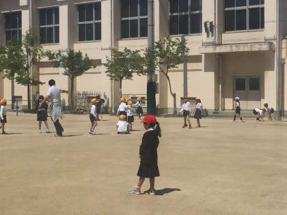 その中で黄色の帽子をかぶってあそんでいるのは1年生です。