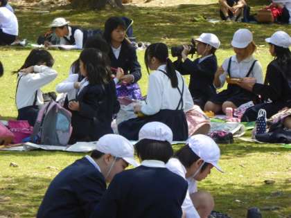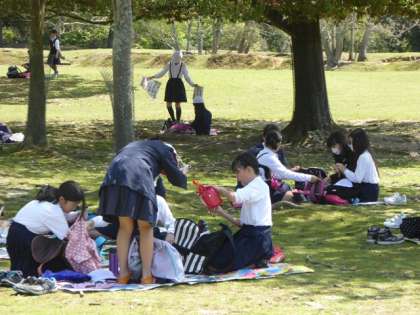 最後は飛火野(とぶひの)の大芝生広場で、待ちに待った「お弁当」
