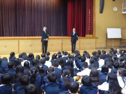 「本当に気持ちのいい挨拶をする学校ですね。」とおほめの言葉をいただき、3月に起こった埼玉の中学生誘拐、2年間の拉致事件を引き合いに、自分の身を守るために地域での過ごし方についてのお話しをしていただきました。