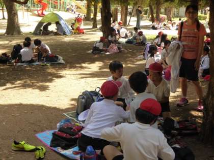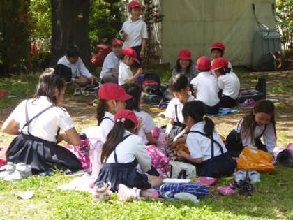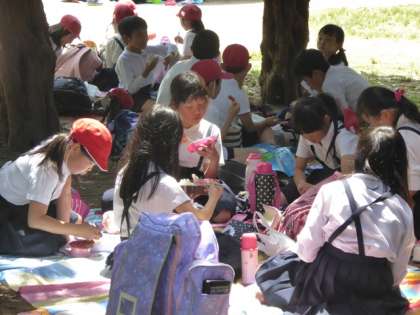 木陰を探し、みんなで楽しくおいしいお弁当に舌鼓。