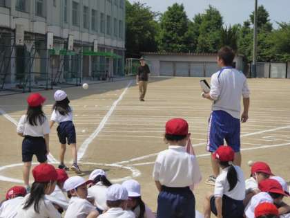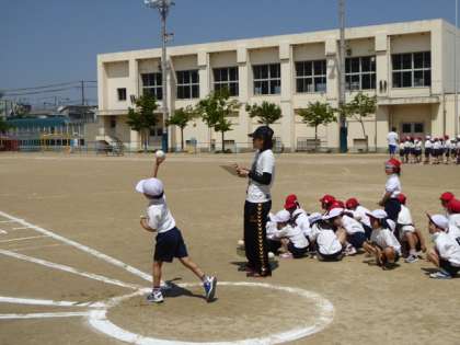「ボール投げ」にいたっては、ボールの握り方から投げ方まで手取り足取り指導です。