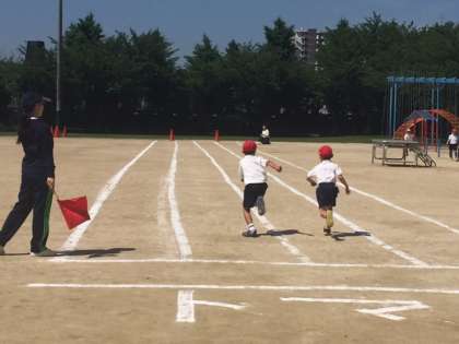 写真は2年生の50m走と4年生のソフトボール投げです。