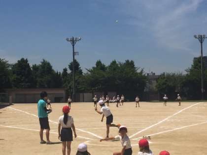 快晴の下、2年生と4年生がスポーツテストに挑んでいます。