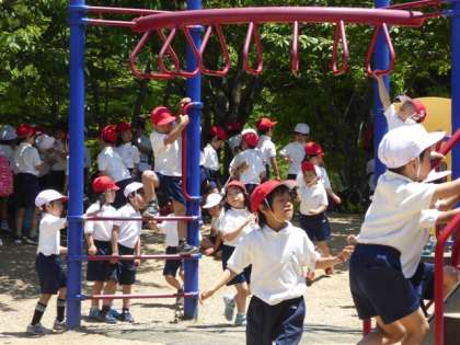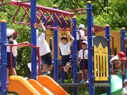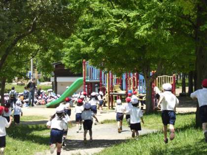 お弁当を食べおえて、ちょっとゆっくりしていると、遊具で遊んでいた学校が一斉にお弁当タイム。