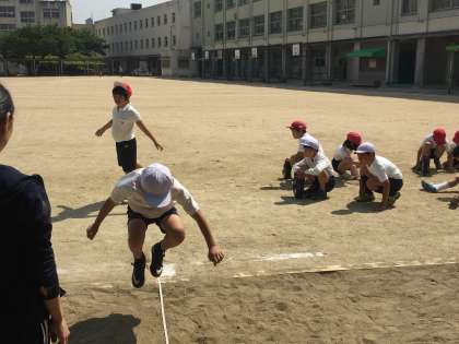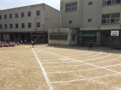 スポーツテストも3回目となると慣れたもので、ソフトボール投げもずいぶんさまになってきています。