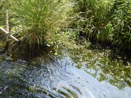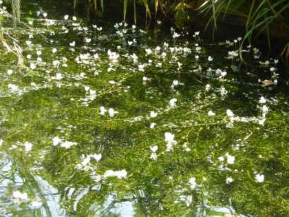 「アナカリス」が白い花を咲かせています 〜ビオトープ〜