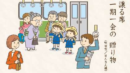 電車に乗ると、すぐに席を譲ってくださって・・・嬉しくてありがとうと言いながら座らせていただきました。そして、その前を見ると、かわいい笑顔で会釈してくださり・・・席を譲ってくださったのは、男の子でした。これはもう学校全体の優しさだと思うと胸が熱くなって・・・
