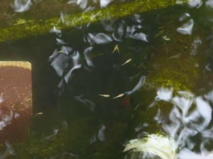 肉眼でもはっきりとその姿を確認することができるぐらい、すくすくと成長しています。どれくらいの稚魚が生まれているんでしょう。すぐに、水面一面をオレンジの魚体がおおってくれそうです。