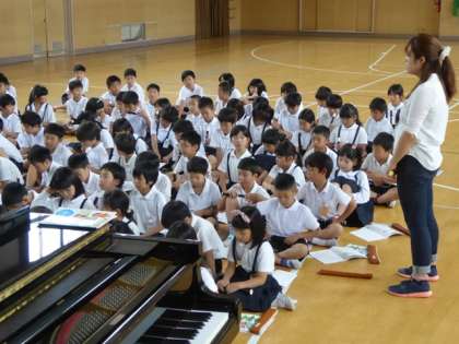 3時間目の体育館、3年生の合同音楽(合音)の授業、