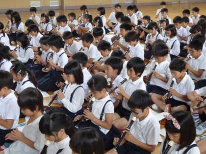 でも、3クラス合同で行うことで、子ども達の演奏レベルをしっかりと確認し、学年として1つになった取り組みが可能になってきます。