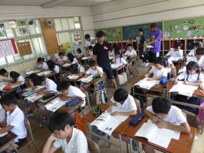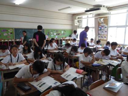しっかりとした授業案を作成し、管理職を含む複数の教員が授業を見学します。授業が終わった後は、授業に関しての批評・高評です。