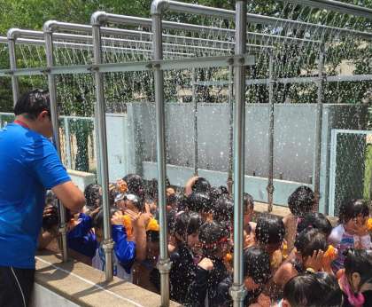 体操が終わって洗体槽で消毒 ここまでは順調!