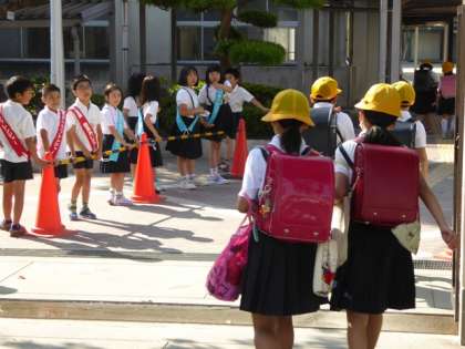 学校前の歩道を完全に占拠してしまい、通行される一般の方々の邪魔に。急きょ10日(金)は学校の敷地内にコーンを設置してきれいに整列、何とか対応したのですが、子ども達には物足りなさそう。