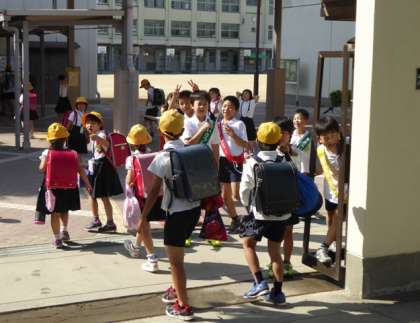 子ども達には13日(月)の昼の放送で伝えました。