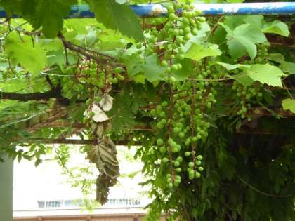 今年もたくさんの実をつけはじめた、中庭の「ブドウ」、