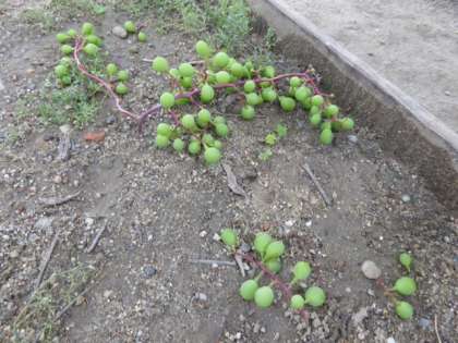 でも、何も知らない下級生にとっては、物珍しいだけの果物の実、無残にも引きちぎられ「ブドウ棚」の下に散乱しています。