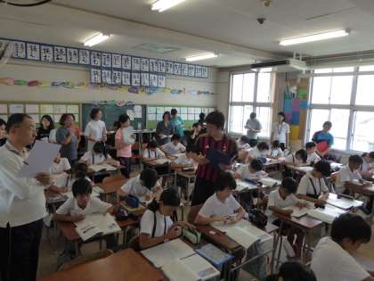 全教員が交互に授業を参観し、成果と課題を整理してメモして行きます。