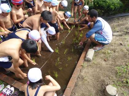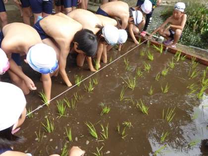 少し時期が遅れましたが、5年生が待ちに待った田植えを行いました。