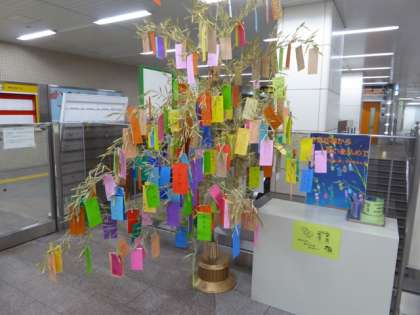 地下鉄「だいどう豊里駅」にも、願いのたくさん詰まった短冊が飾