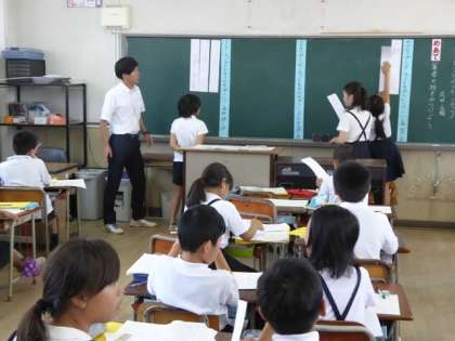 学年の代表者(教諭)が校内公開授業を行う授業研究会があります。