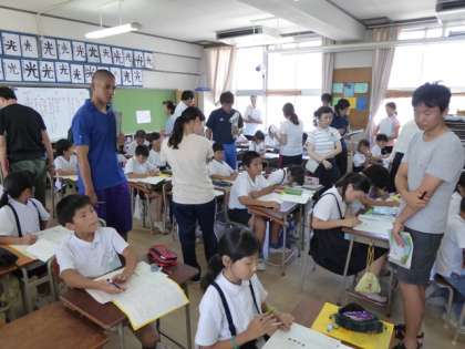 全教員が交互に授業を参観し、成果と課題を整理してメモして行きます。