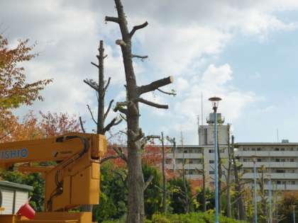 見る見る間に枝が打ち払われ、中央公園もすっかり冬支度。