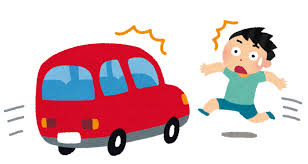 以外を横切り、友達に呼ばれて、渡りなおしたところに車・・・